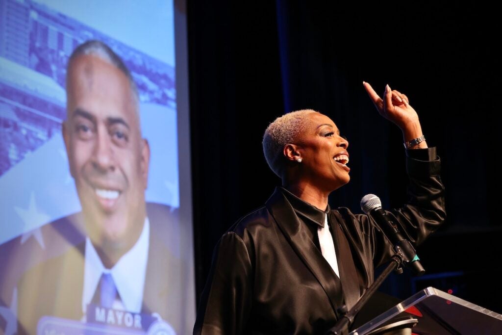 Leading up to the speech, Carstarphen received a chorus of praise from City Council President Angel Fuentes, New Jersey Community Affairs Commissioner Jacquelyn A. Suárez and state Sen. Nilsa I. Cruz-Perez. Actor, director and Camden native Tasha Smith delivered the formal introduction, setting the stage for the mayor’s remarks.