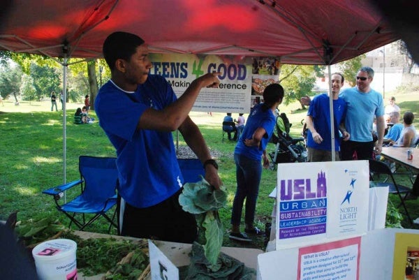 Guarding North Light’s produce stand was Laurence Caulk, a senior at Roxborough High School and a member of USLA, who pointed over his shoulder to the half-acre farm at Gorgas Park, which is just one of many plots of lands tended by the Philadelphia teens.