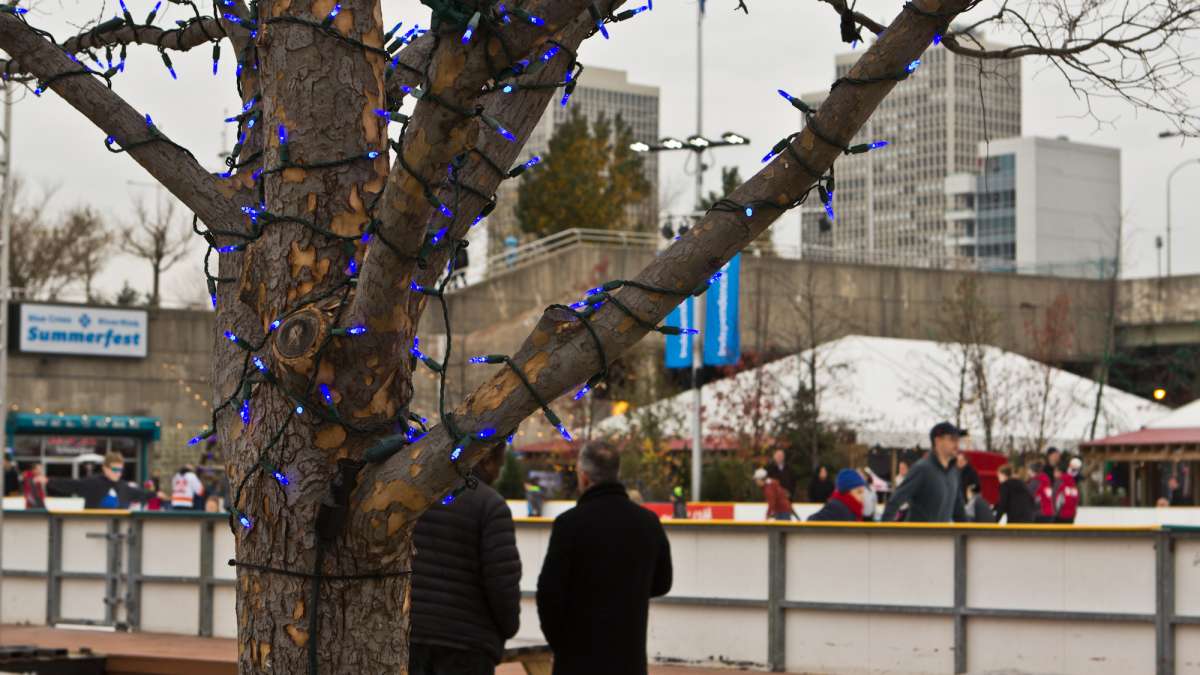 Hundreds came to the opening of Philadelphia’s Winterfest at the River Rink — an outdoor ice rink and rustic lodge at Penn’s Landing on the Delaware River.
