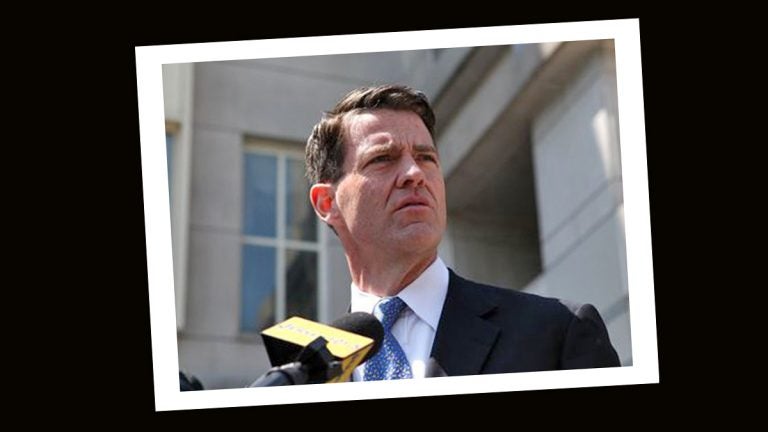 Bill Baroni, former deputy executive director at the Port Authority of New York and New Jersey, speaking outside Newark federal court after his arraignment (Stephen Nessen/WNYC)