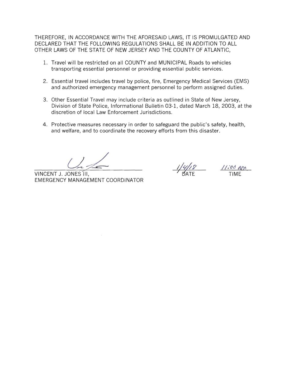 Delaware Gov. John Carney declared a Level 1 travel emergency for Sussex County, advising anyone on the roads to “exercise extra caution.’’ People were also encouraged not to drive “unless there is a significant safety, health or business reason to do so.”
