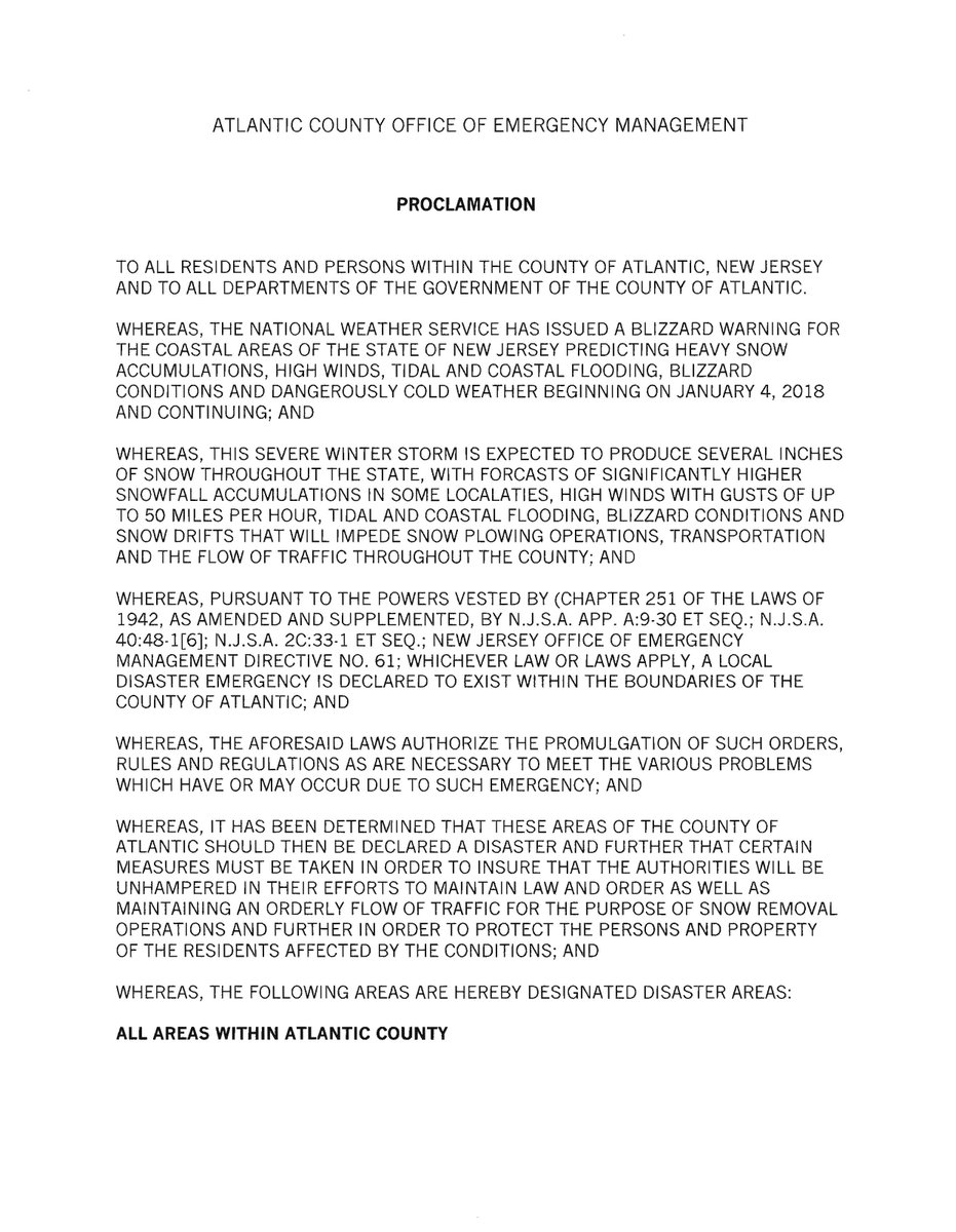 In New Jersey, Gov. Chris Christie declared a state emergency in Cape May, Atlantic, Ocean and Monmouth counties and ordered all state offices closed statewide.