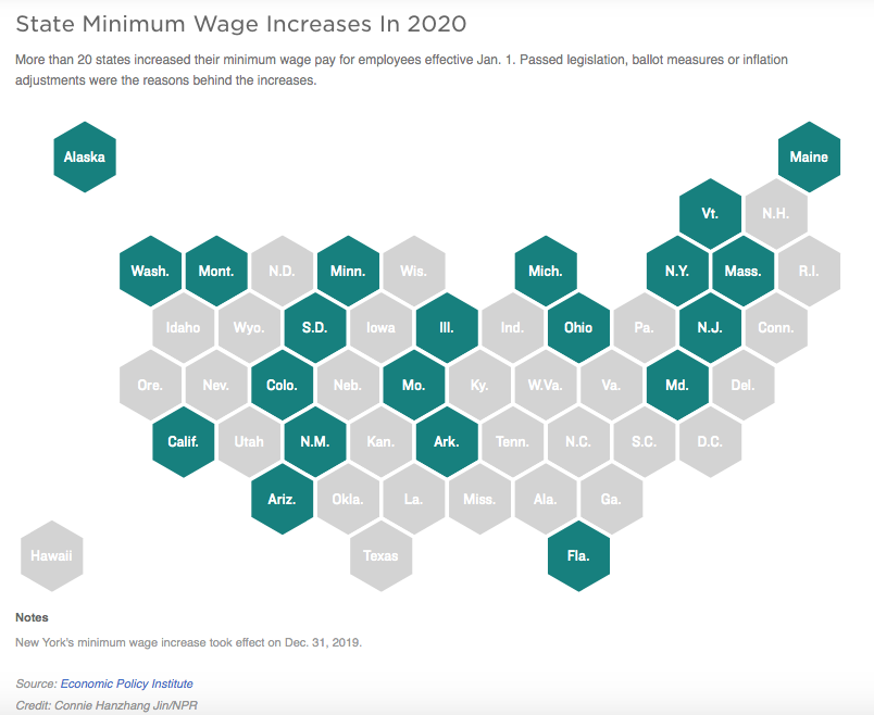 While the federal minimum wage hasn’t changed in more than a decade — it’s still $7.25 an hour — many cities and states have adopted higher thresholds. In Arizona, Colorado and Maine the minimum wage is already $12 an hour. Minimums are higher still in California, Massachusetts and Washington state.
