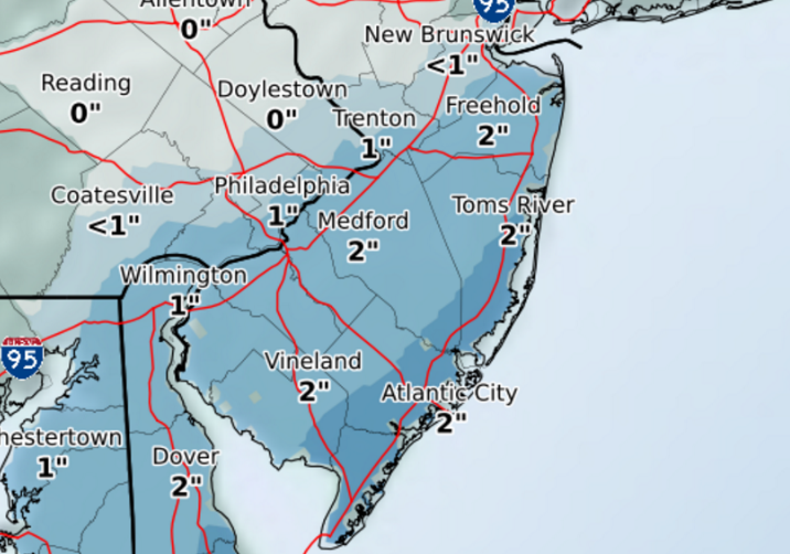 A quick hit of snow is possible at the Jersey Shore Thursday night into Friday morning. Forecasters at the National Weather ...